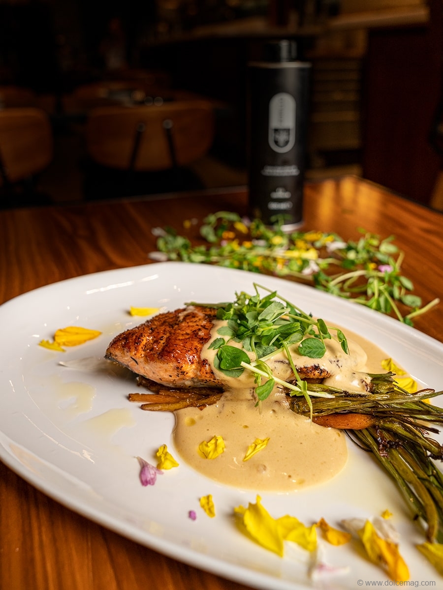 Pan-Seared Atlantic Salmon, with House-Made Zerillo Premium Extra Virgin Olive Oil and Marsala Zabaglione