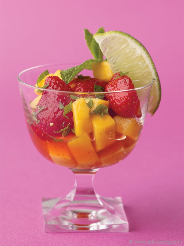 This refreshing summer dessert combines the delicious lime and rum combination of the classic Cuban drink the mojito with sweet mangoes and ripe strawberries. Serve it over yogurt, ice cream or completely on its own. You can also go virgin by eliminating the rum.