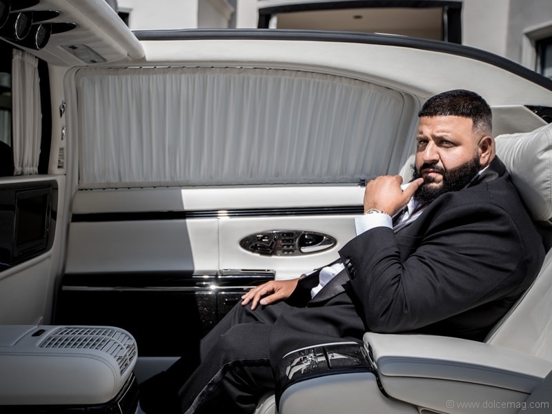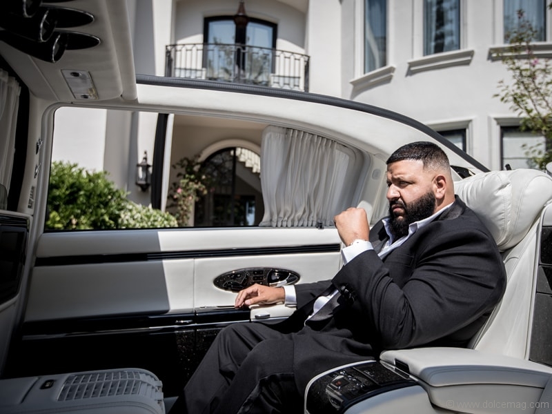 And after what seems like an eternity, finally the world-famous DJ, celebrity collaborator and father of Asahd, is standing before us, apologizing for the delay. “But, as you know, I am a busy man,” the legend tells us. “I am also a father, and you know, family comes first. We also have a party going on at five, so, let’s do this.” With that, the Dolce crew gets down to logistics — locations we want to shoot in, the wardrobe we’ve selected — the list is extensive. At last we’re in motion, in the midst of our own “collab” with the man whose often-memed catchphrases have inundated us: “We the best.” and “Bless up.” In the background, his staff rushes off to get his gleaming white Maybach Landaulet convertible, top down.