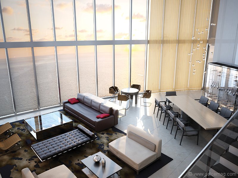 “The Porsche Design Tower is my pièce de résistance,” he says on the phone from his office in South Florida. “We’ve done a lot of firsts in that building, from the car elevator that takes you in your car to your apartment to the plunge pools on every single balcony. We have amenities in there that you’ve never seen before, like race-car and golf simulators.It’s an amazing playground of a place you’re going to move into and never want to leave.”