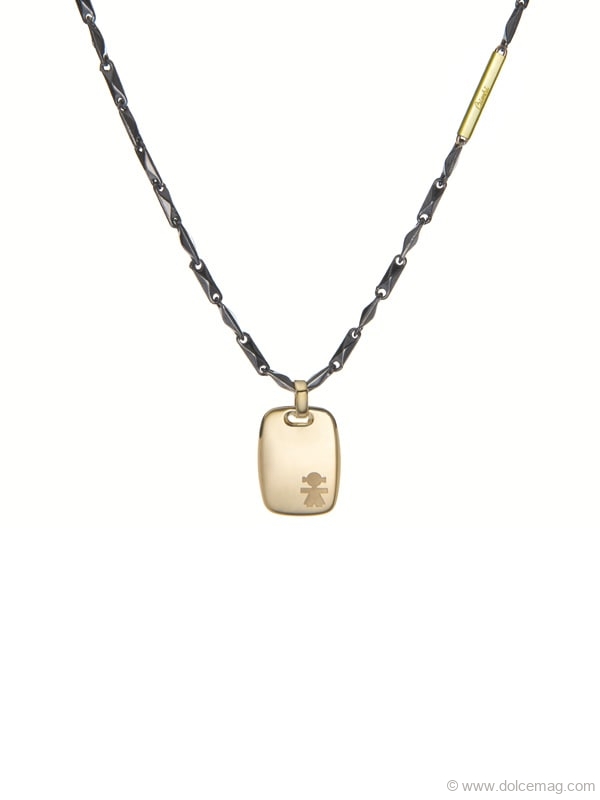 3. PAPA’ SIGNATURE COLLECTION: This 18-karat yellow gold signature pendant comes with an engraved female silhouette and Bimbi logo.