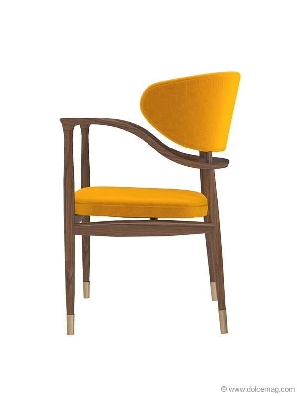 13. MASON DINING CHAIR: Made with velvet fabric, walnut wood and polished brass, the Mason Dining Chair from Mezzo Collection adds a contemporary touch to any dining room.