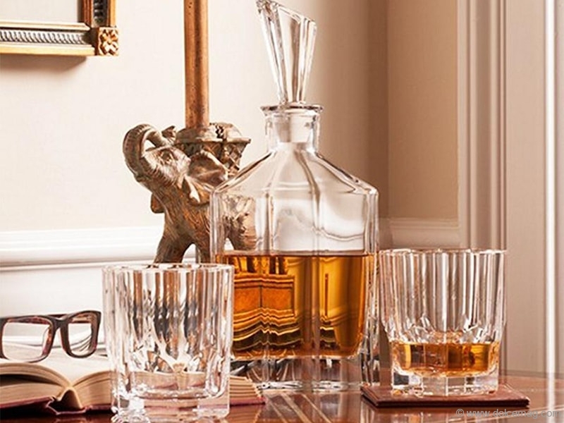 10. NACHTMANN ASPEN DECANTER SET: This stylish cut crystal set, with vertical cuts around the perimeter of the glass, comes complete with a decanter and six glasses.