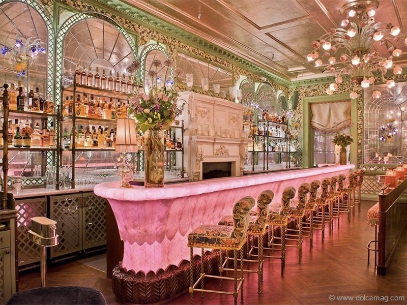 1. PINK ONYX BACKLIT BAR: Situated in the etherial escape of private members, club Annabel’s in London, this pink onyx, backlit bar lives in the Rose Room, surrounded by bespoke tulip and iris chandeliers.
