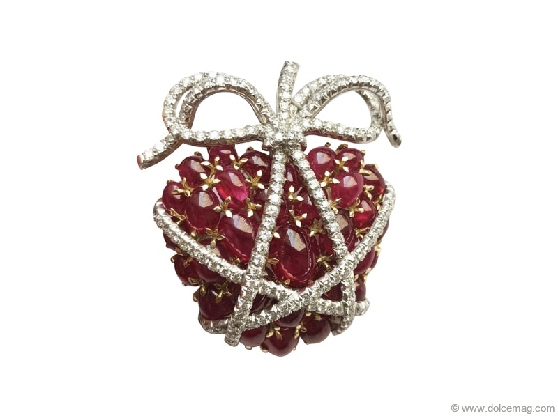 7. WRAPPED HEART BROOCH: As one of Verdura’s most recognized designs, the Wrapped Heart Brooch dates back to 1941, when American actor Tyrone Power commissioned a cabochon ruby heart tied in gold for his wife at Christmas.