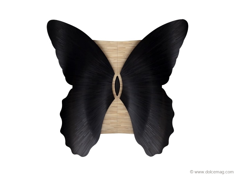 6. PAPILLON CABINET: French cabinetmaker Jean-Luc Le Mounier builds butterflies into this cabinet, which opens with black straw marquetry wings set upon expertly hinged doors to shelves and hidden compartments.