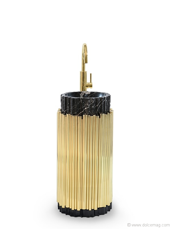 14. Sink Goals: Maison Valentina’s free-standing sink, Symphony, balances opulent nero marquina marble and gold-plated brass to create an elegant handcrafted masterpiece