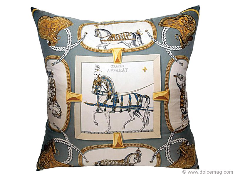 6. Embrace your loved one’s eloquent equestrianism amongst timeless interiors with this Grand Apparat Silk Scarf Hermes Pillow. www.vivre.com
