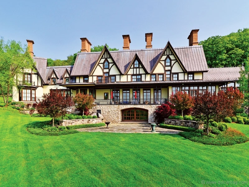 This 28,000-square-foot Gothic mansion features 11 bedrooms and seven fireplaces. French doors give entry to an expansive terrace affording spectacular views of the rolling Caledon hills. Friends and family will enjoy the indoor pool and hot tub, cabana facilities, spa, steam room, magnificent stone and granite fireplace, climate-controlled wine cellar and five-car underground garage. Additional highlights include outbuildings: a guest house, chauffeur’s apartment and manager’s residence.
