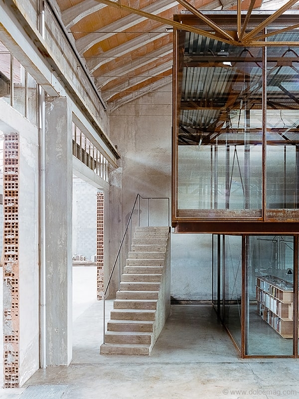 AMAA took this approach to its own studio, where the firm converted an abandoned plumbing factory into a new workplace, complementing the one already in Venice, Italy. Based in the Italian town of Arzignano, in the province of Vicenza, the result is a steel-framed, two-storey glass structure nestled in the heart of an old factory. While designing, the duo wanted to ensure they didn’t just preserve the structure’s industrial character, but also that it sat within it as seamlessly as possible. As a result, the same materials — cement, steel and glass — were used, and the beams introduced appeared as rusted as those already in the building.
