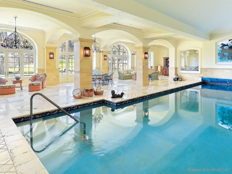 Comfort is an understatement. This cozy property has sweeping views of the landscape, which can be enjoyed in every room, further blurring the line between the great outdoors and the comfortable indoors. “The clients had a deep appreciation for the architecture and the details,” says Kent Taylor, principal designer of Foxley Green. “I don’t think at that time back in the ‘00s there was that type of commitment to building such a high-calibre home of that scale on a farm.” The spa-like ambience is continued throughout the home, as Foxley Green is equipped with a massage room, indoor pool, billiards room, exercise area and light-filled living space. “It’s breathtaking; there’s a beautiful etched-glass coral reef scene, a large seating area and a fireplace [to] accent the indoor pool wing,” says Dunlap.