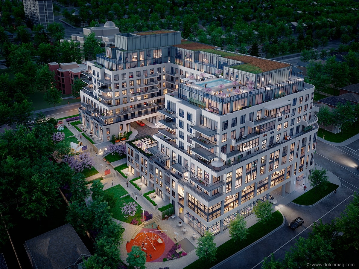 This is an elegant nine-storey luxury boutique building located in the Glen Park neighbourhood of North York, Toronto’s coveted and exclusive Bathurst & Glencairn area. It includes a hotel with 22 suites, as well as 1,020 square metres of retail/commercial space at floor level. This project is unlike anything else in the area with an intimate and exclusive condominium that will have 113 units, including two- and three-bedroom units.
