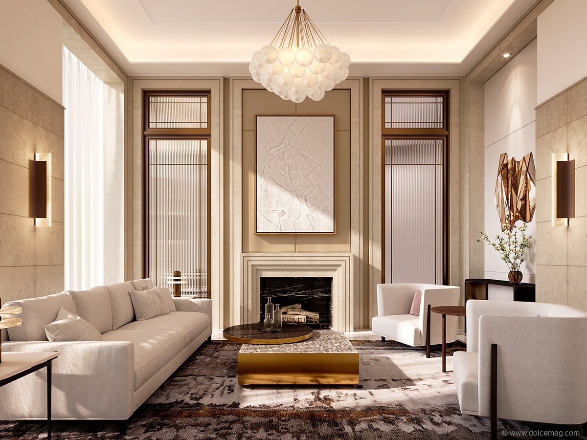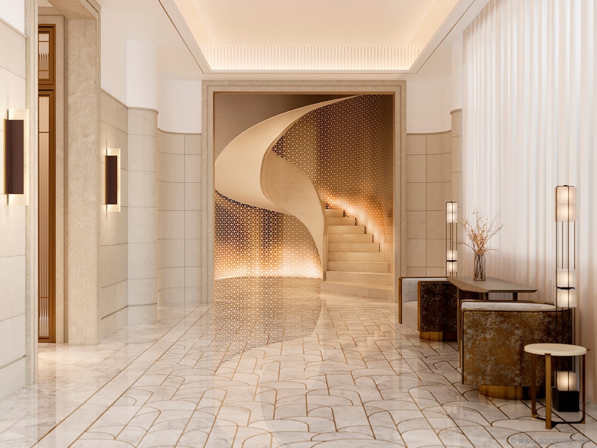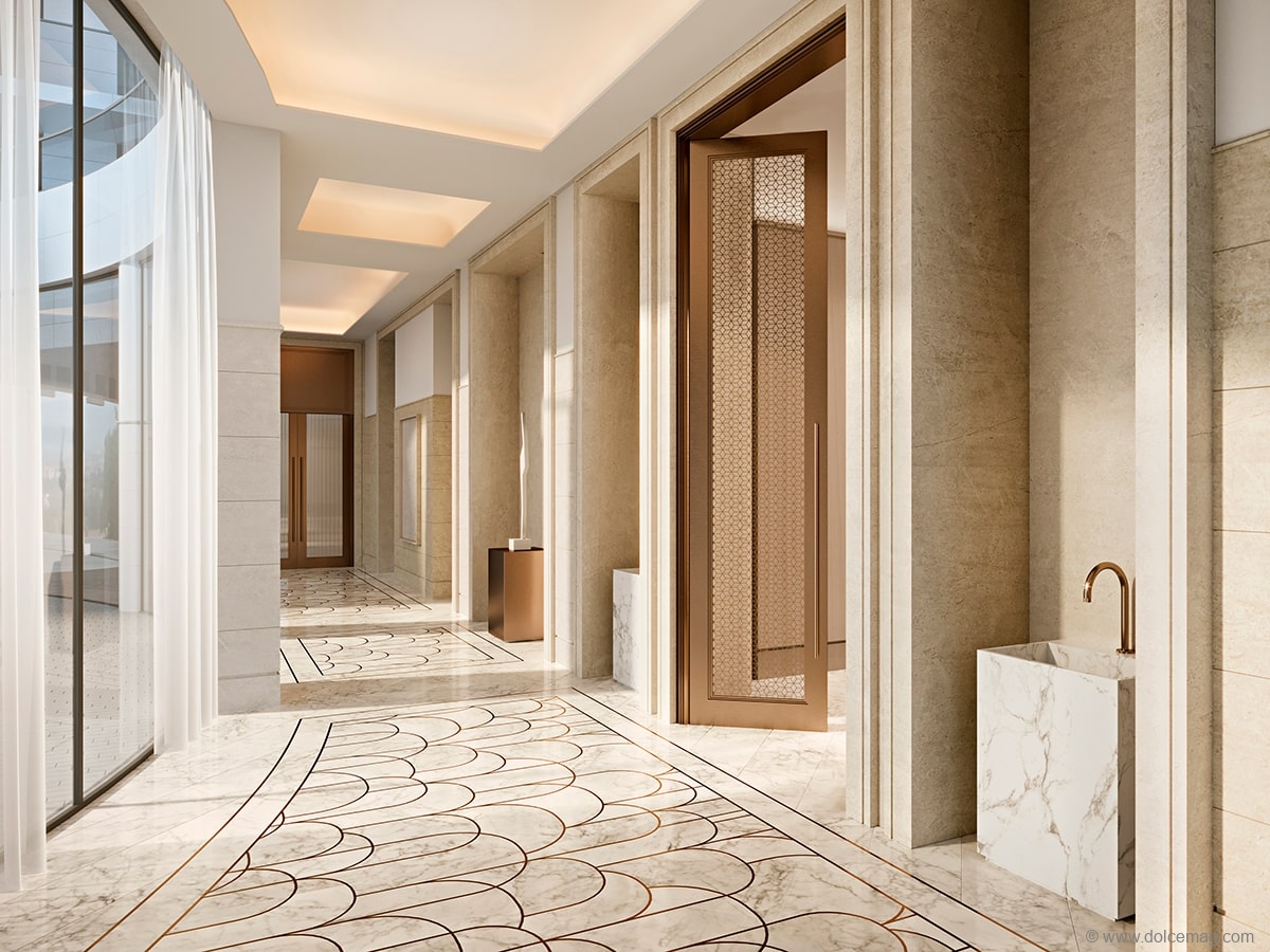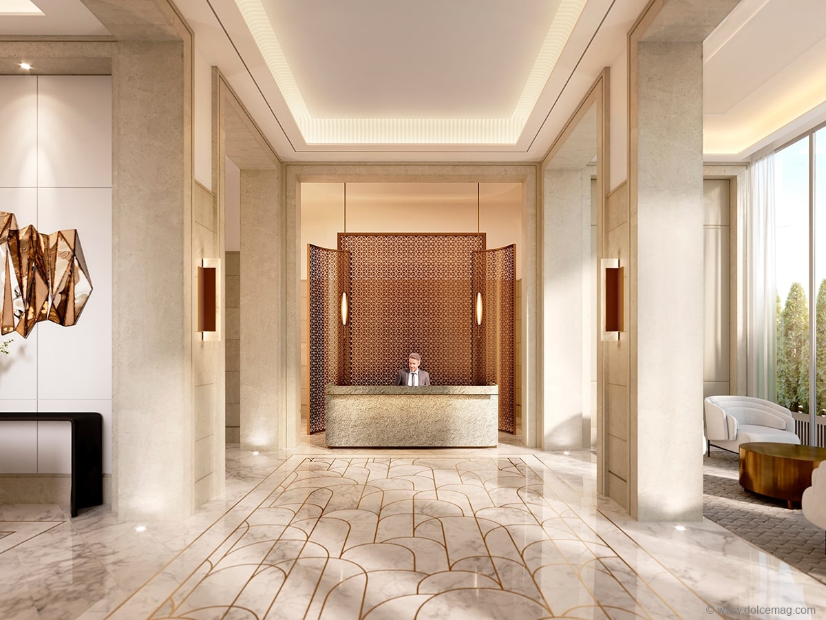 The stunning residences range from 1,000 square feet to more than 5,000 square feet. There are two beautiful lobbies that feature a relaxing lounge and two dedicated 24-hour concierges that include porter services as well as a parcel delivery room. Interiors are led by Studio Munge with custom-cut marble floors and majestic columns clad with natural stone.