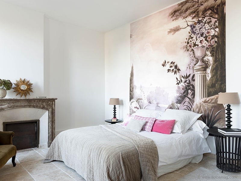 With its sober and elegant lines, the furniture matches the décor. It frequently varies according to the mood of the designer. “I like change. The furniture is transient in my house! As I renew them regularly, I never buy high-value pieces. On the other hand, I am in love with my objects, mostly brought back from Asia or gifted to me by my children. I will never part with them. These are my treasures. The cellar is full of them. I take them out whenever I want. There are two that do not leave my office: one a doorstop brought back from Korea and the other a black crystal Buddha from Baccarat.” Globetrotters, Anne and her husband share a common passion for Asia. Travel is a constant source of inspiration. “The Banks of the Nile,” “Borneo,” “Shandapur” — the wallpapers that Anne has been creating since 2008 — represent landscapes animated by picturesque and poetic scenes, inspired by the tradition of panoramas. Hand painted, they are now digitally reproduced in a printing house in the region to respond to the dazzling success of the brand. “This made it possible to democratize the product and meet growing demands. I’m very lucky; it’s an incredible adventure that my daughter Méliné joined this year, after studying fine arts. She is completely involved in our family business and takes care of the showroom that we have just opened in Paris.” Facing the vineyard, in her workshop located in the former cellar of the estate, the designer escapes to imagine her decorations evoking a nostalgic vision of the Asia of yesteryear. “Ananbô is the creative culmination of all these Asian images accumulated in me for years. As a child, I already dreamed of Asia. I imagined the landscapes over there without ever having seen any photos. I don’t know where it comes from. Maybe I was Asian in a previous life,” adds the designer, laughing.