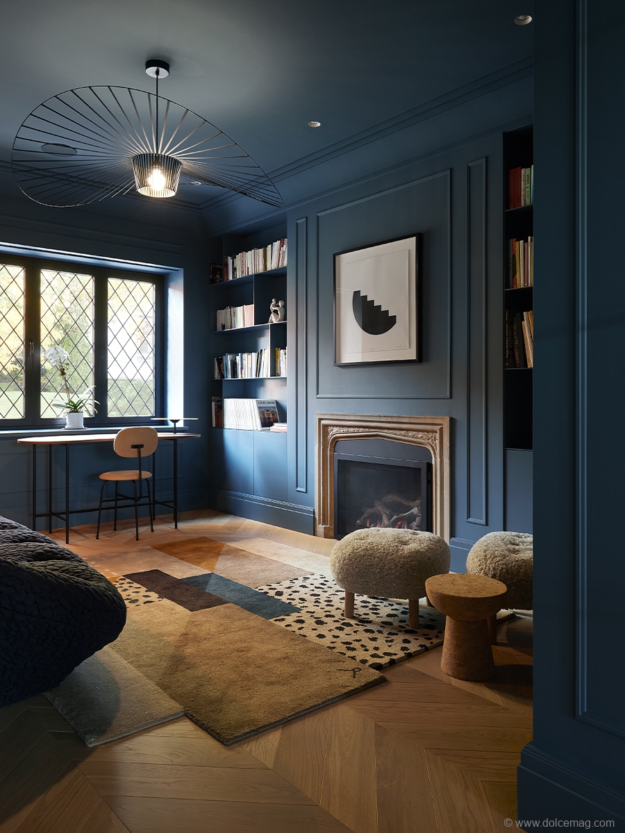 What was once the original entrance hall and staircase now houses a black oak staircase that extends like a ribbon through the heart of the house, bringing all levels of the structure together. With its design details and minimalist metal balusters, the staircase is a graceful example of the architect’s vision of joining the historic and contemporary.