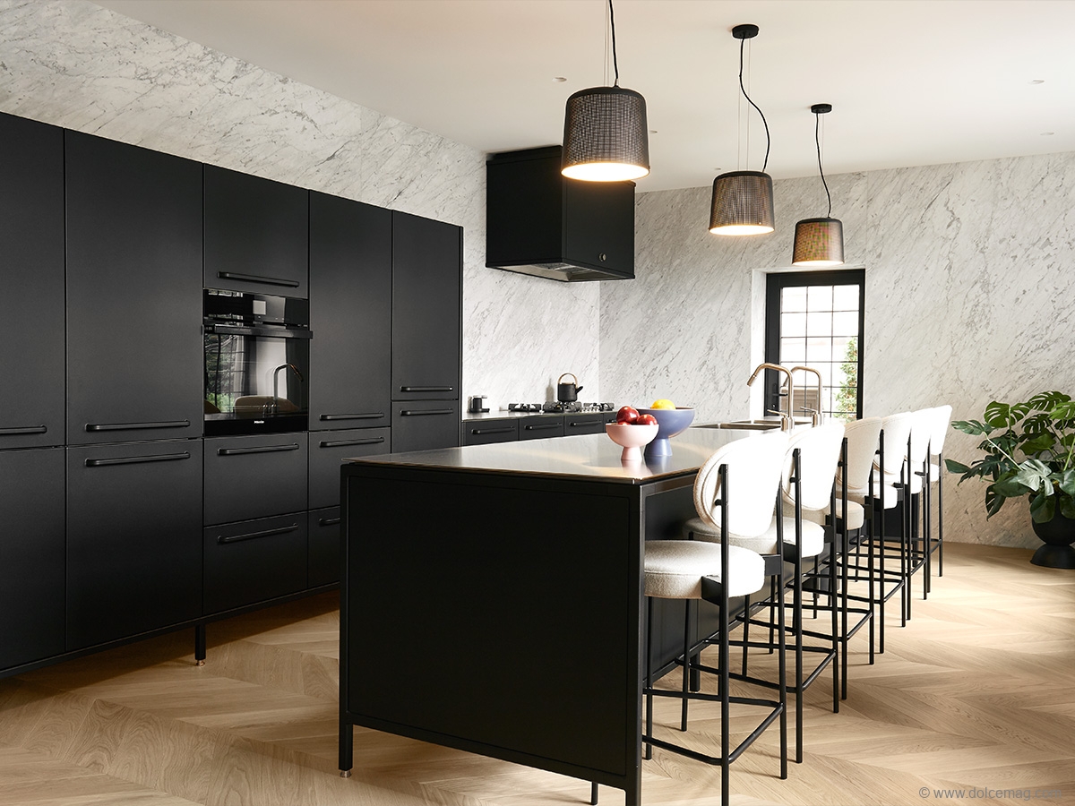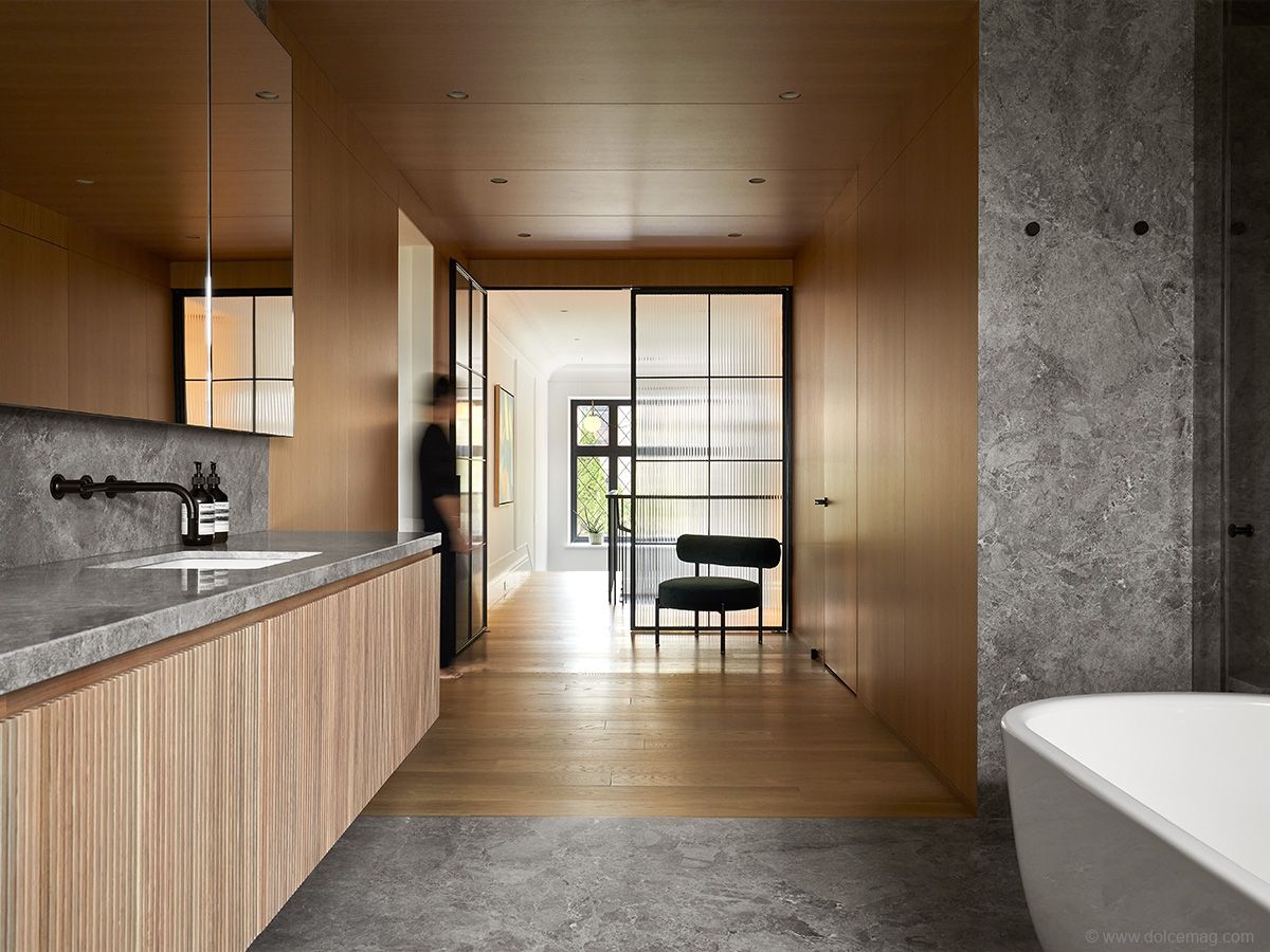The kitchen is another focal point. MXMA said that it was tasked with employing “an aesthetic more reminiscent of fine furniture than the conventional features of a built-in kitchen.” Thanks to minimalist modules from Danish company VIPP and a central island that acts as both a workspace and dining area, it’s a contemporary hub for the home.