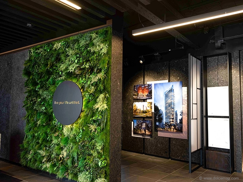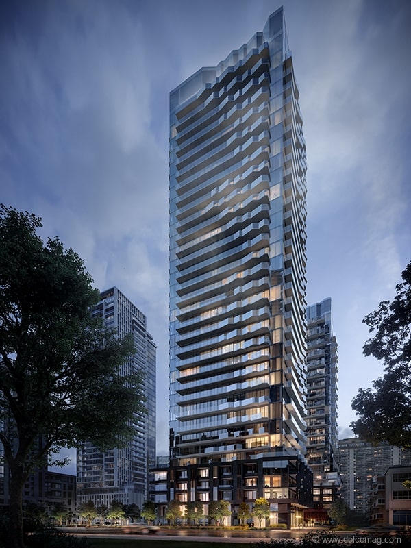 The team looked to Japan, and Tokyo, in particular, for innovative ideas. As a result, they brought inspiring architecture and interior design to the Toronto market. The seed for Untitled’s architecture is rooted in the cultural background of lead architect Mansoor Kazerouni of IBI Group. He introduced the concept of a jugalbandi, a performance in Indian classical music featuring an intricate duet between two solo musicians. The term translates to “entwined twins,” and that is how Kazerouni envisioned the project; his work entwining with sound waves from one of Williams’s songs. Using parametric design, the sculpted, fluid form of the balconies follows the wave pattern of Williams’s hit song “Gust of Wind,” articulating the building as a visual abstraction of music.