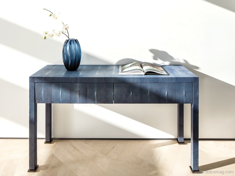 Besides that, Adams asked me for one thing — a wooden floor. I wanted a marble floor with a reflection that would bring lots of light into the home and reflect the view. After Adams expressed his desire for a wooden floor, I tried to find a floor with the same qualities of marble that would still work well with the design concept. When I could not find such a product, I developed the floor especially for him in co-operation with the Italian company Listone Giordano. I developed a new type of wooden floor, the Pearl Collection parquet flooring (now available through Listone Giordano Natural Genius range) that captures the texture of the soft sand and the movement of the sand sculpted by the winds. It grasps the colours of pearls and the toning of the sun’s rays, playing between the folds of the sand. The new texture of wood that I created reflects the shining sparks and mimics [the play] of light as if it were a living structure.
