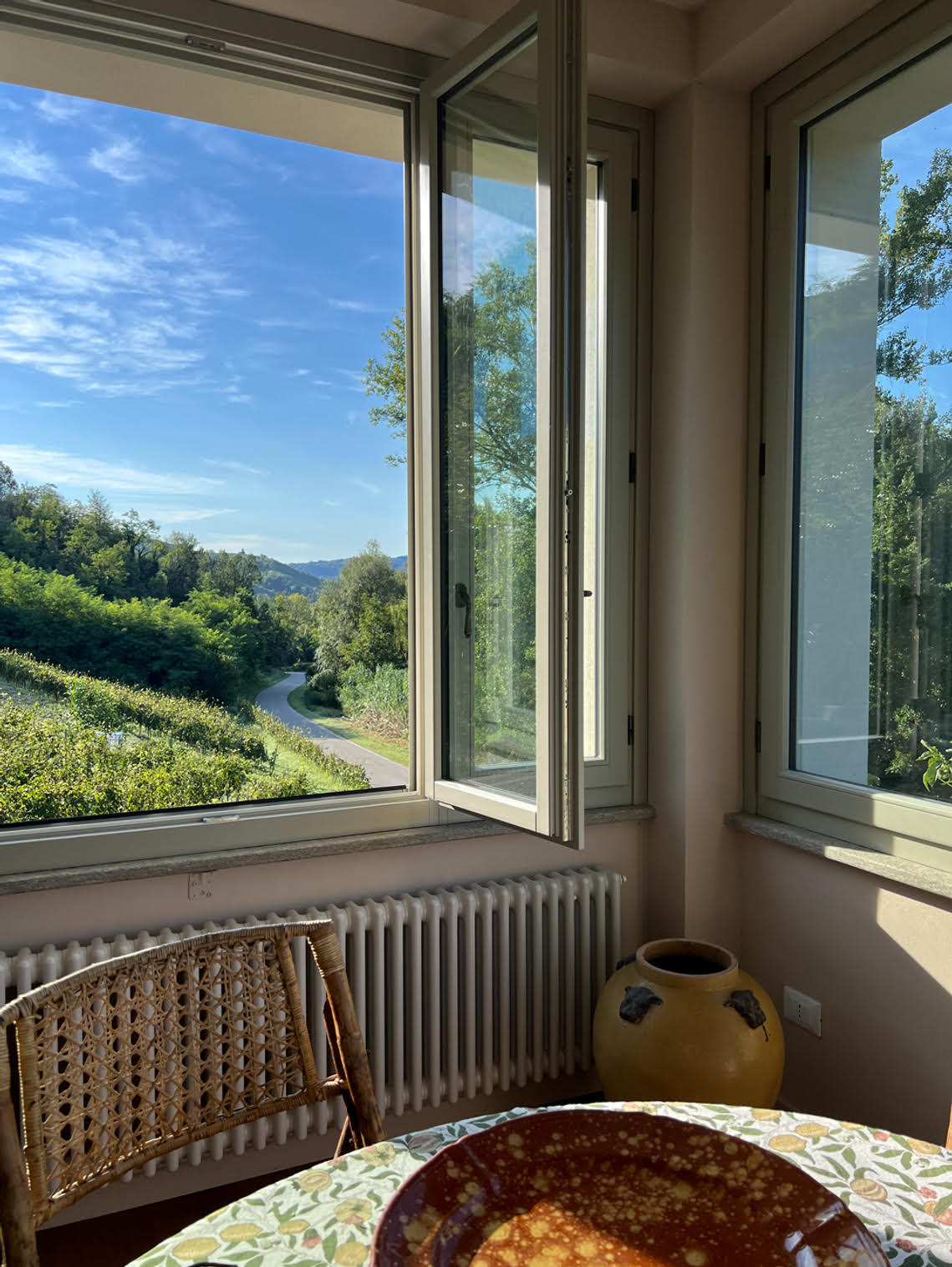 Among the gorgeous rolling hills of Piemonte Italy’s wine and truffle country sits this beautifully renovated and furnished home.