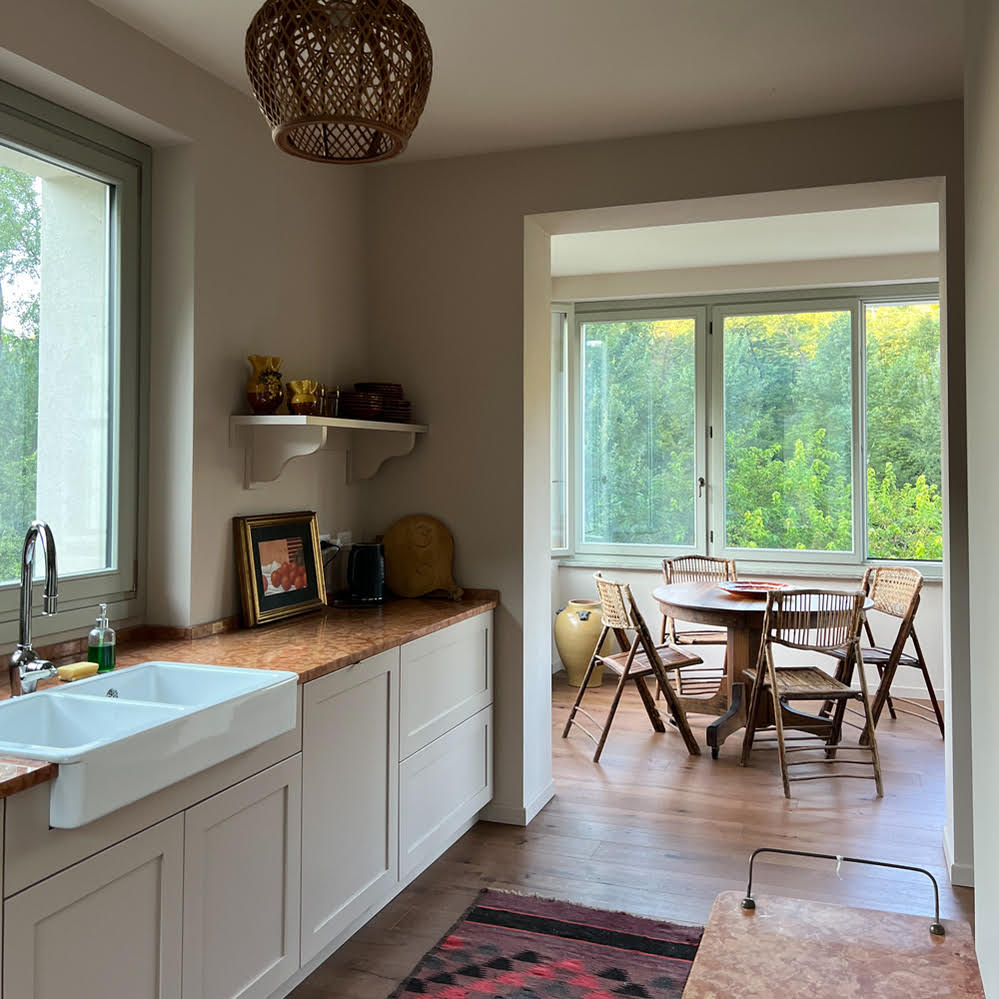 The two bedroom, one-and-a-half bath house, called ‘Piccolina,’ was created by the owners of Villa Giara, an acclaimed inn in Calosso, Piemonte.