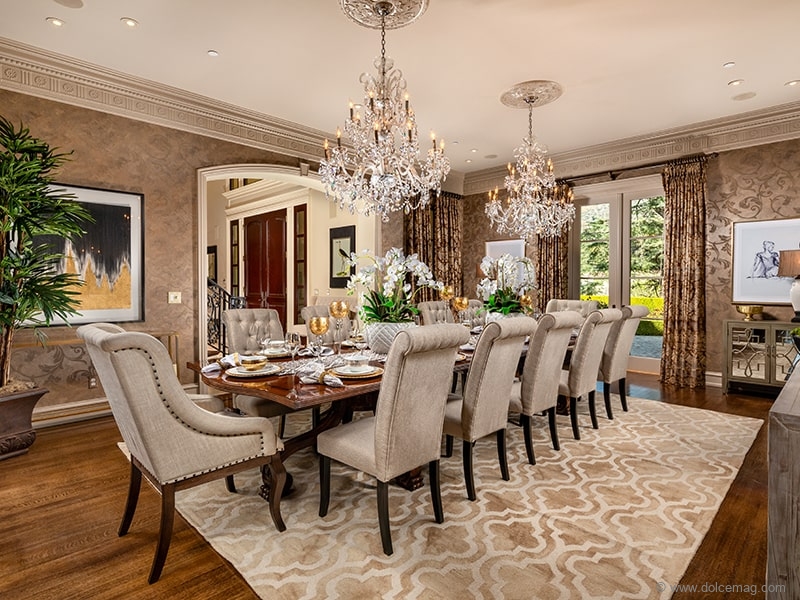 The house itself is home to 11 bedrooms and 14 bathrooms, and it sits alongside a three-bedroom, two-bathroom guesthouse. It boasts sweeping staircases, a home theatre, formal living and dining spaces and a grand foyer. It’s also the perfect place to indulge with its dedicated wine room, a chef’s kitchen with double islands, and a full outdoor kitchen.