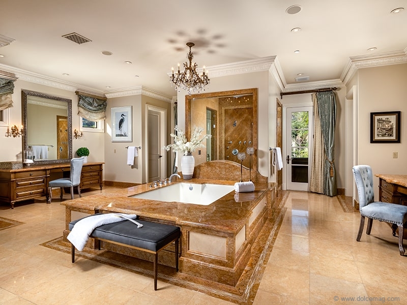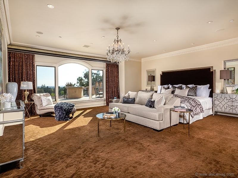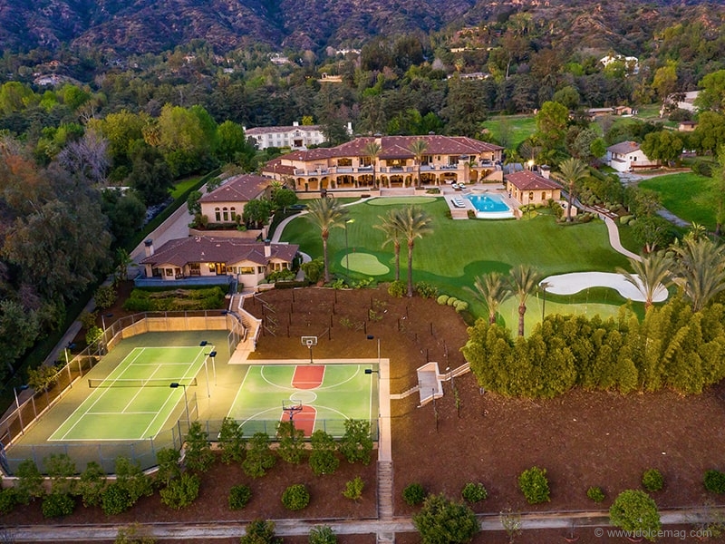 Situated in the 24-hour guard-gated Bradbury Estates in Los Angeles, the property evokes the feeling of a resort, and weighs in at more than 18,500 square feet. It comes with four acres, featuring a two-hole golf course, tennis court, basketball court, fitness centre, recreation centre and six-car garage. Naturally, you can escape the heat in the infinity pool and cabana surrounded by vineyards and fruit trees.