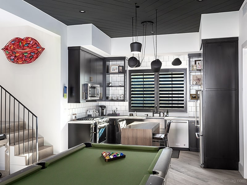 Built in 2018, the almost 10,000-square-foot home is comfortably sized for Clarkson’s family of six, with many indoor and outdoor venues for entertaining groups of extended family members and friends. Included are formal living and dining rooms, eight bedrooms — one is a master suite with its own private patio — 11 bathrooms and a spacious kitchen and family room dining space, complete with a pool and lawn views. The layout also offers a number of private getaway spaces, both indoors and out, that provide spots for quiet meditation or a chance to kick back and read a novel without interruption. Recreation is easy to find, whether it is in the games room with its own kitchenette for making snacks, the large pool deck with dining area near the kitchen or the twin bars and outdoor kitchen with a fireplace and lots of space for sun loungers. The pool, spa and lawn beyond are completely private, with walls and mature shrubbery. The property also features a separate two-bedroom guest house.