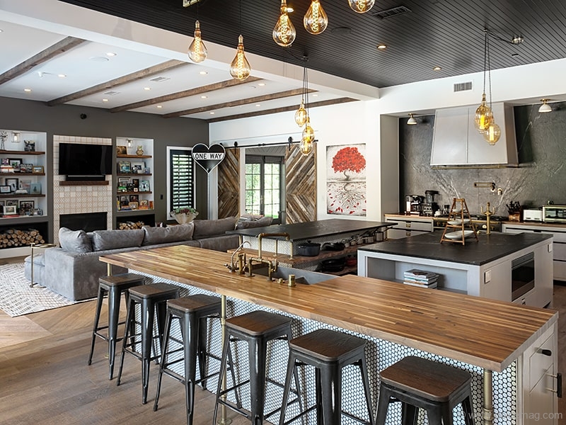 Clarkson has always been popular for her girl-next-door persona and fresh, energetic personality. From growing up poor to a staggering net worth of more than US$45 million, she has chosen beautiful but functional mansions, not the soulless show-off structures that scream, “Look at me. See how important I am?” Instead, her style says, “Come on in and have some iced tea.” The rooms are always large and airy, but filled with wood and industrial accents, a deep coziness and feel-good textiles. Guests are impressed, but they are also bear-hugged in warmth and friendliness upon entering. And her San Fernando Valley home in Encino is no exception.