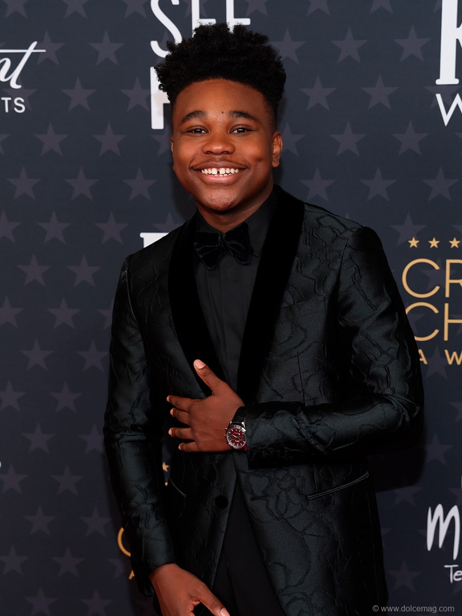 Best Young Actor/Actress nominee, Jalyn Hall paired his suit with an OMEGA Speedmaster ’57 Co-Axial Master Chronometer Chronograph.