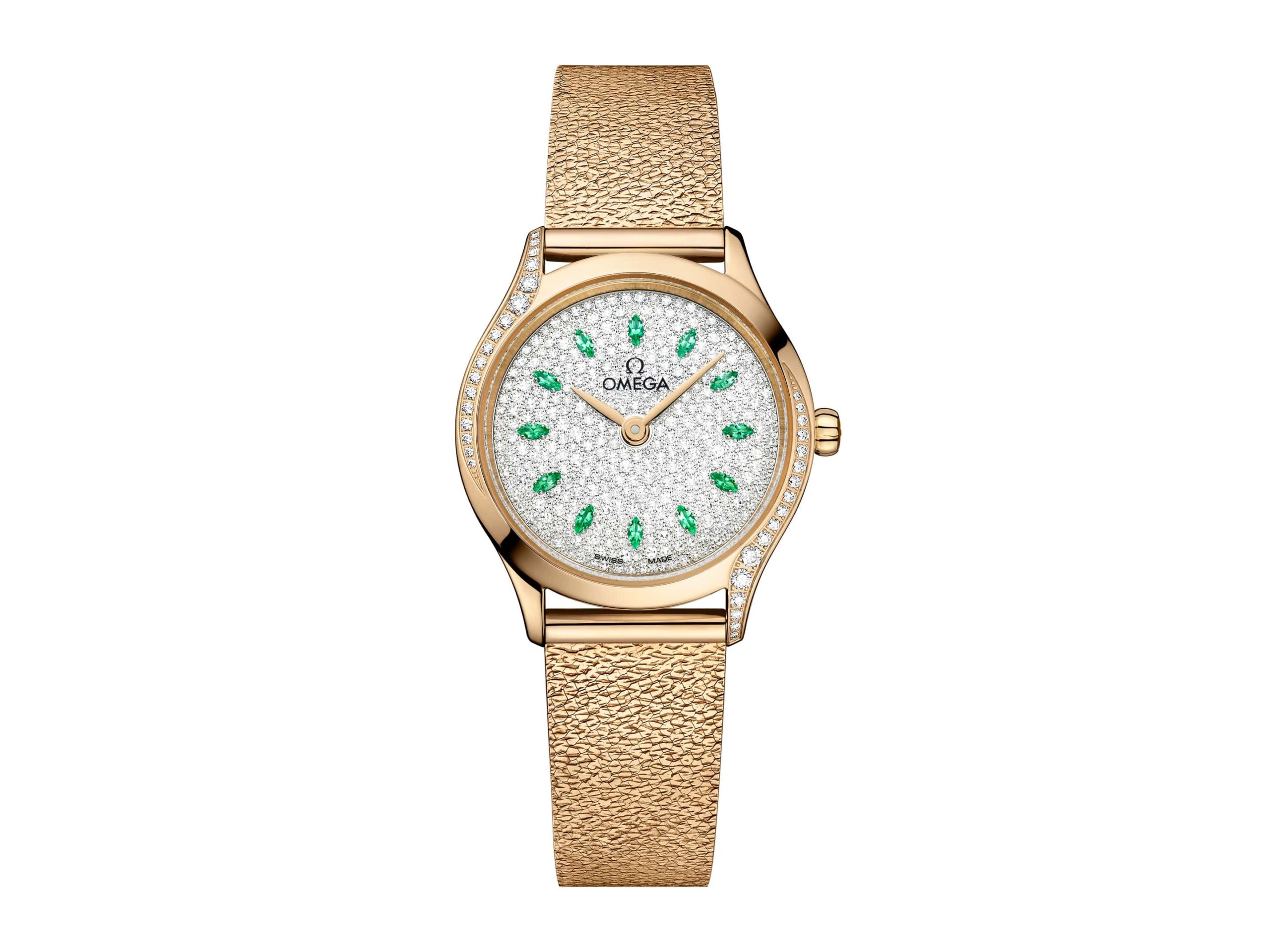 To mark this amazing milestone, OMEGA produced a personalized watch worthy of her style, grace, and extraordinary talent: a 26mm De Ville Mini Trésor in Moonshine™ Gold.