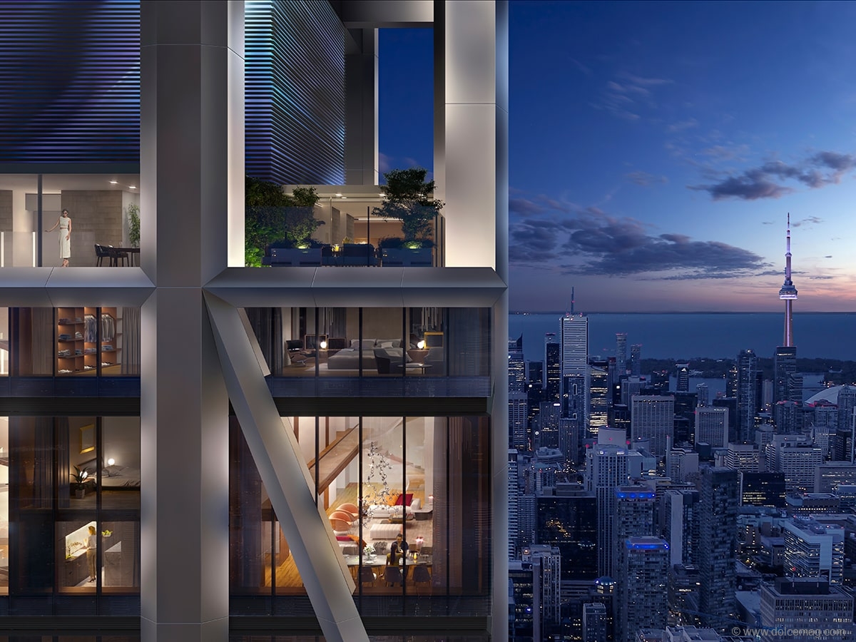 This stands true for The One, with Mizrahi Developments engaging Foster + Partners for its groundbreaking project. Known for its exoskeleton designs, the firm took a similar approach to the way it developed the Gherkin in London, England, an iconic development in the capital’s skyline. Foster + Partners created a superstructure in which the support for the building is mainly on the exterior, allowing for interiors that maximize exposure to the sunlight. With this in mind, The One truly takes advantage of what nature has to offer, allowing the sky to be a daily, ever-changing canvas between its soaring window frames. “This is a once-in-a-lifetime opportunity to live in a one-of-a-kind building in Canada,” says Mizrahi.