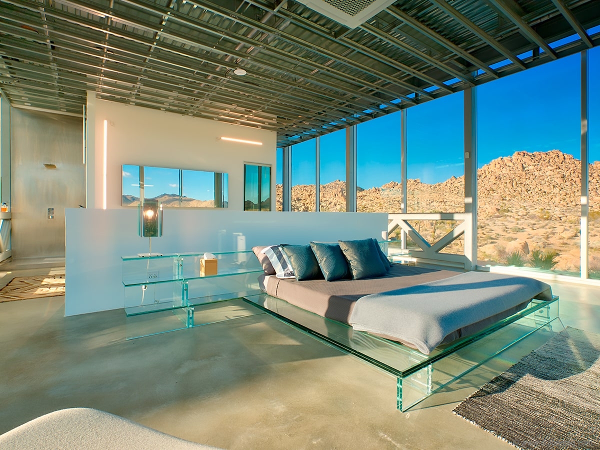 Not only does the location of this home make it so unique and rare, but the design of the home itself does, as well. The one-of-a-kind home took design inspiration from the sci-fi classic 2001: A Space Odyssey. Located within untouched surroundings, set on 90 acres of tranquil desert land and cantilever 100 feet in the air, this 5,500-square-foot home has four bedrooms, three bathrooms, a 100-foot pool and a 222-square-foot projection wall. The home faces west so that you can fully experience the desert sunset. It is the largest privately owned piece of land bordering Joshua Tree National Park and is designed to celebrate the environment providing seclusion and oneness with nature.