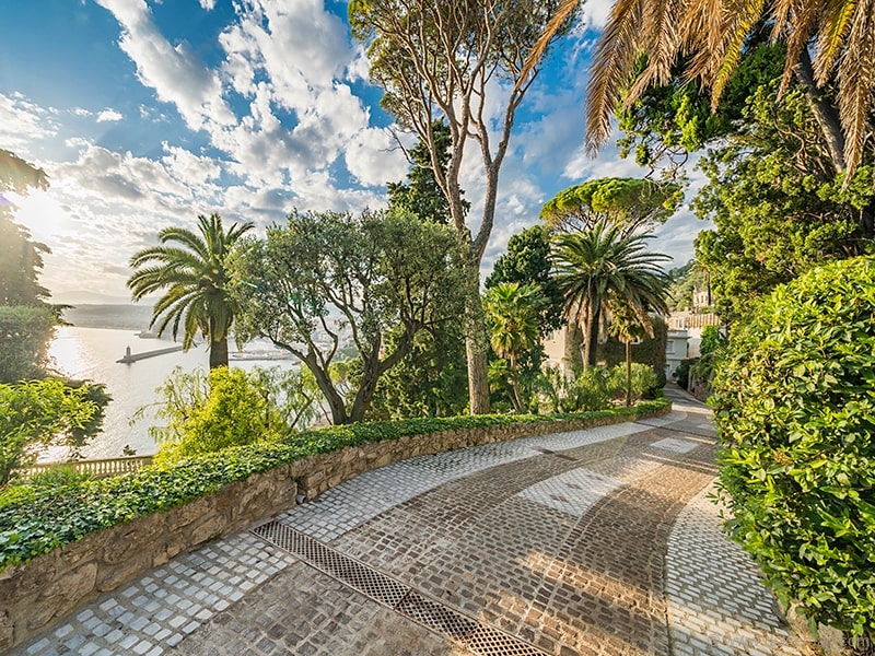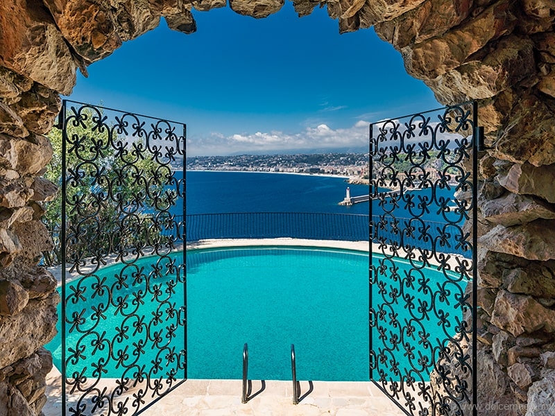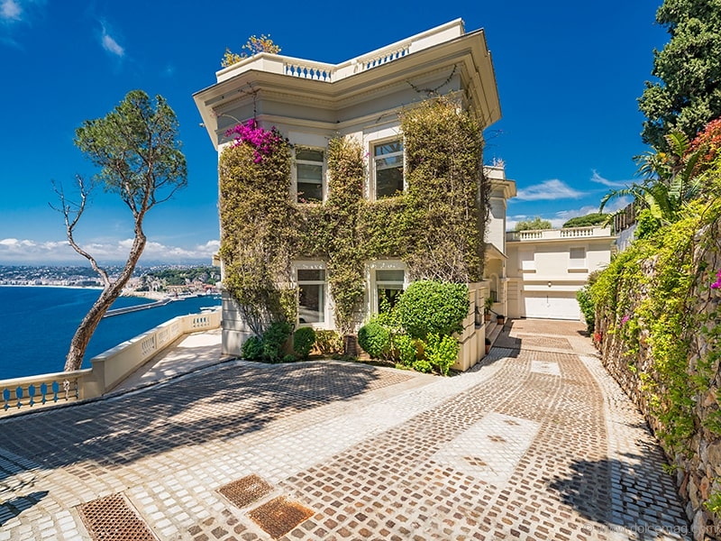 This belle époque–styled Mediterranean villa, featuring stone French architecture popular in the 1920s, sits on more than one acre in Cap de Nice, Côte d’Azur, France. Situated on a hill above Cap de Nice, the villa affords spectacular vistas of the Mediterranean Sea, the city of Nice and the Old Port.