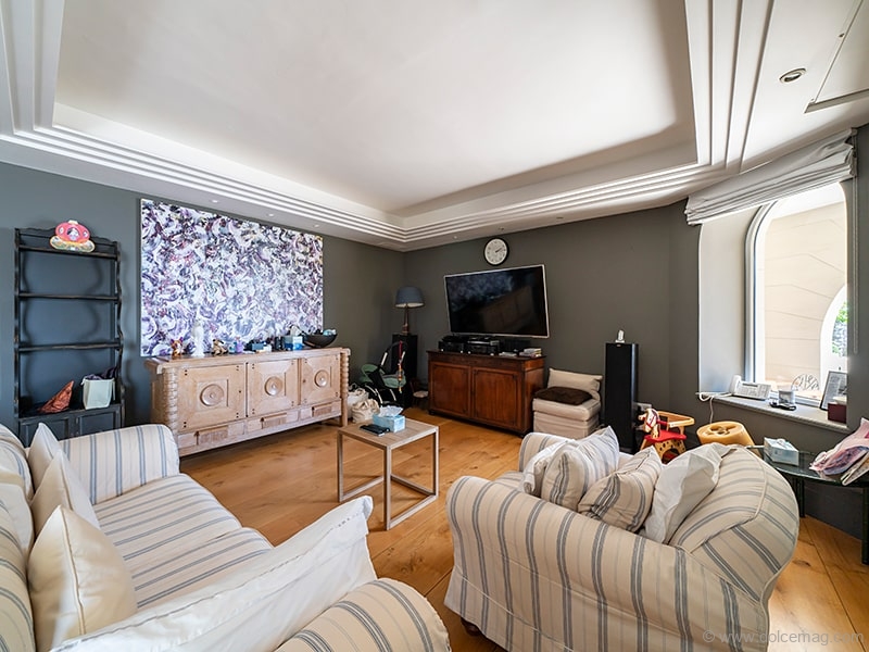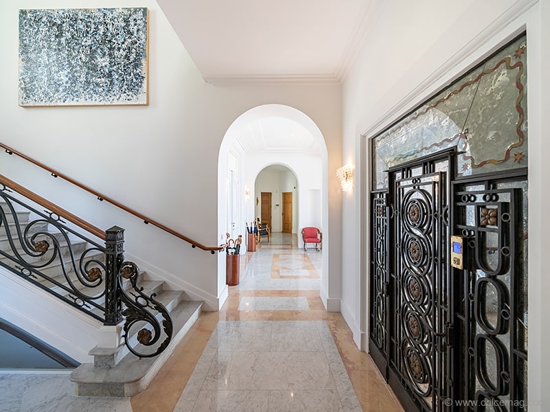 One of the most attractive features of the villa is its surrounding environ, with lush wraparound landscaped garden terraces, two pools and a rooftop terrace. The property also offers a gym, and a staff apartment is located above the attached two-car garage. The entire villa is dressed in colourful wisteria vines, adding to its already-idyllic setting.