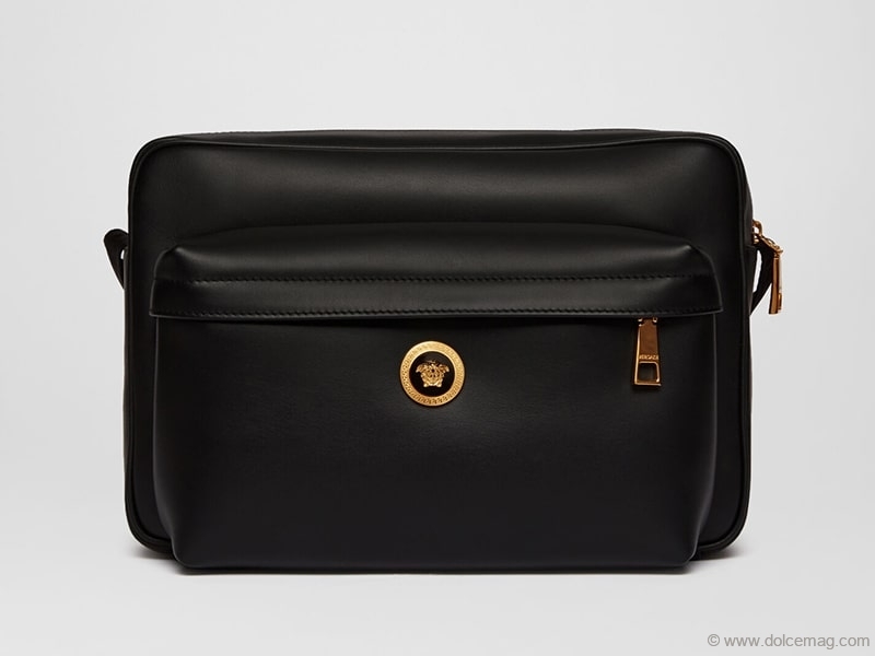 Simple. Suave. Stylish. He will love the supple calf leather and versatility of this messenger bag and subtle gold-tone Medusa plaque.