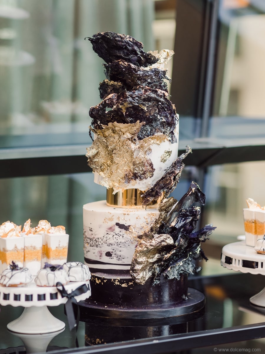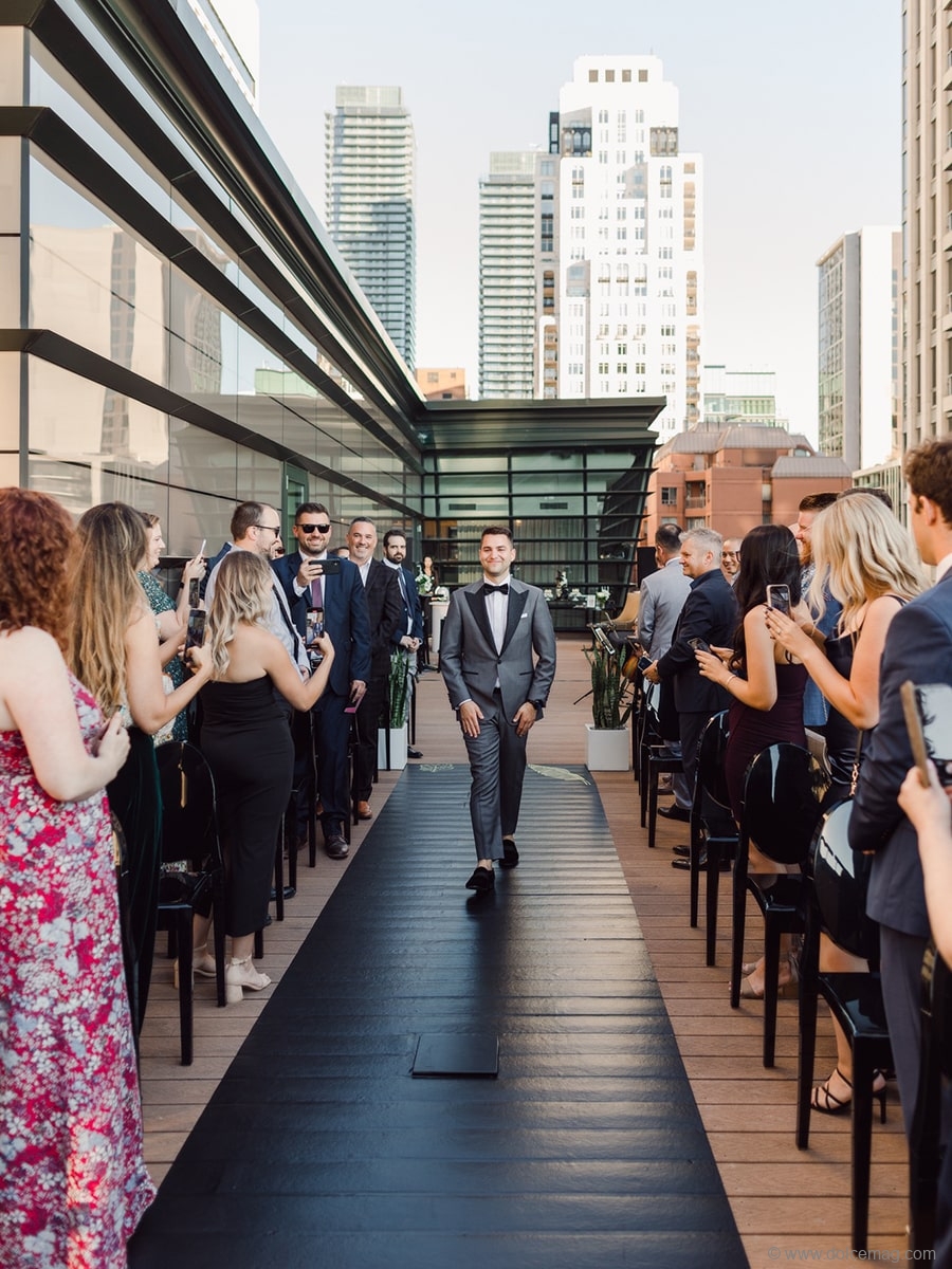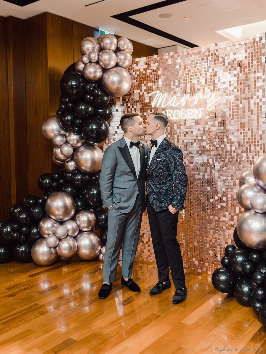 The couple ended up sharing their wedding with 35 friends and family, with Harry Rosen providing features including a champagne wall, sweets and tuxedos.