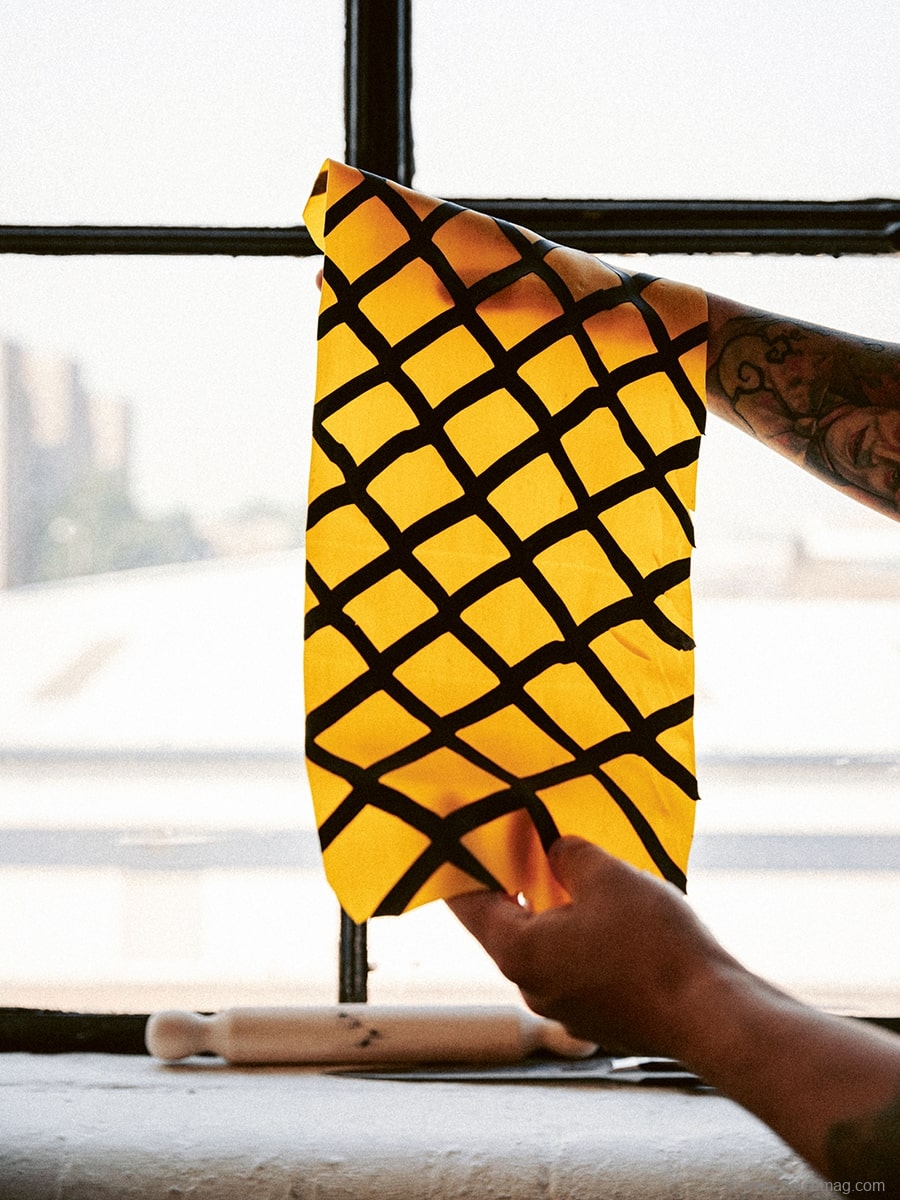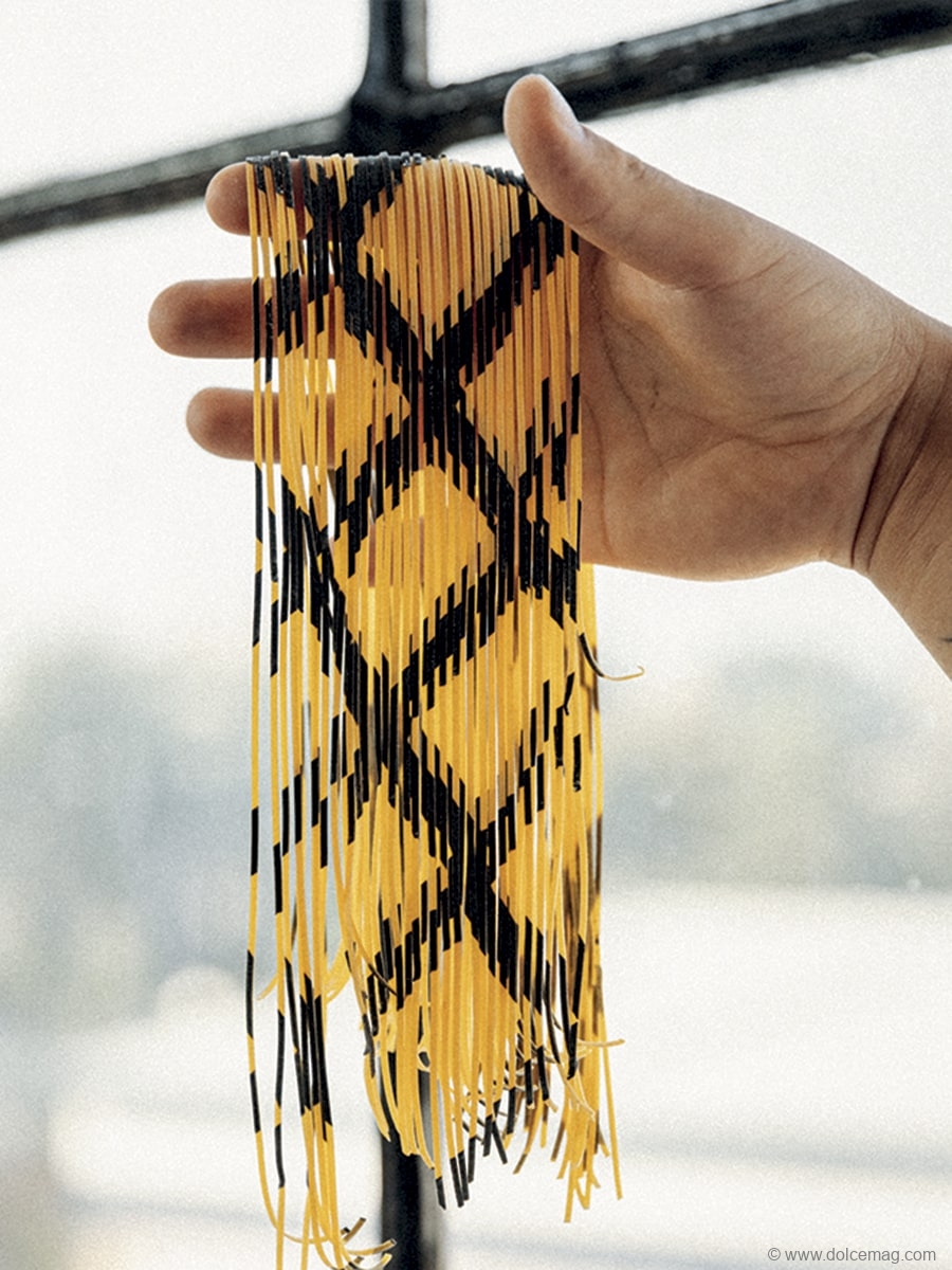 A: I love a bit of a challenge. Last year, I made pasta for Burberry. They approached me, and we did Burberry icon-striped pasta. Making pasta like that for a shoot was amazing. Two days ago, I made some Gucci pasta, pushing the boundaries a bit. I like to say the sky is the limit. I made Banks pasta, the lady with the balloon. I think food is like art; there’s a very fine line in between.