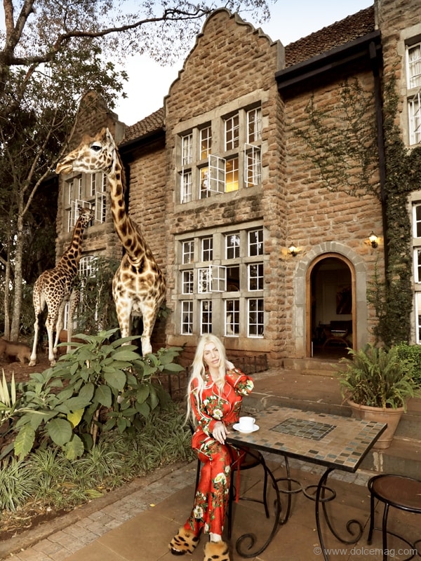 Sheldrick also offers opportunities to adopt orphaned elephants from four months to three years of age at Giraffe Manor outside of Nairobi, where Sylvia stayed. A boutique hotel set on 140 acres, it offers human interaction with its resident herd of wild Rothschild’s giraffes to raise awareness of the crisis facing giraffes. An estimated 100,000 giraffes remaining in Africa, a number which has dropped 40 per cent in the last 30 years, are being poached for reasons ranging from commercial bushmeat trade to pillow covers, placing them among wildlife’s endangered species. For Mantella, Giraffe Manor was a special experience.