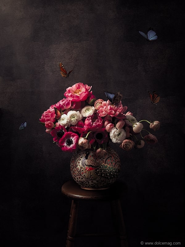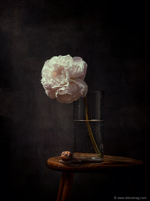 Her observational nature has been displayed in her recent Rembrandt Series, which again, had its origins in a simple and natural way. “COVID has all given us the gift of time, and I’m home much more now and one day received a bouquet of spring flowers,” she recalls. “During the day, I could watch how the light changed on the bouquet, and I immediately thought of Rembrandt and how he would paint flowers and how his colours reflected the drama of changing light on flowers.”