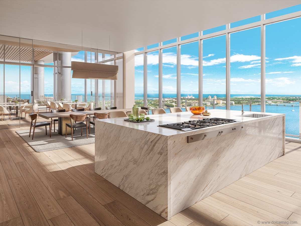 It offers 275 condo units and 170 rental units, all beautifully designed and finished with a variety of floor plans. The crafted two- to four-bedroom-plus-den residences are surrounded by views of the Intracoastal, Palm Beach and the Atlantic Ocean. The soaring floor-to-ceiling windows and light and airy living spaces combine to create a tranquil ambiance for its residents.