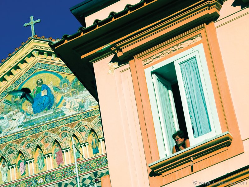 Coming out of the covered passageway, I enter Amalfi’s Piazza del Duomo and conversations resound in the intimate piazza, which buzzes with well-dressed Italians in their bella figura. The women’s olive skin is sweetly embraced by flowing hair and natural Mediterranean beauty. The Dolce Vita, or sweet life, is the essence of daily life here, where beauty and passion rule at all levels in art, architecture, cuisine, people, lifestyle and fashion.